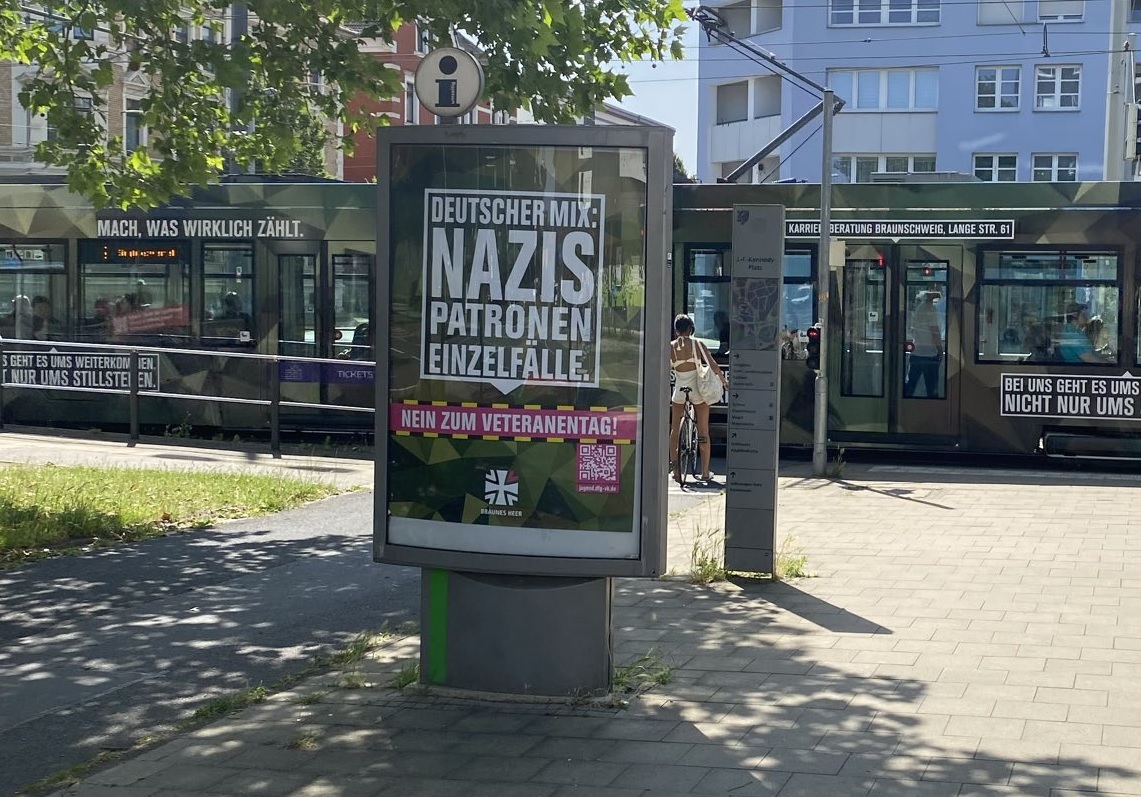 Auch Braunschweig macht mit bei den Adbusting-Aktionen des Antimilitaristischen Aktionsnetzwerkes gegen den Veteranentag! Hier einige Fotos der Aktion aus Braunschweig.