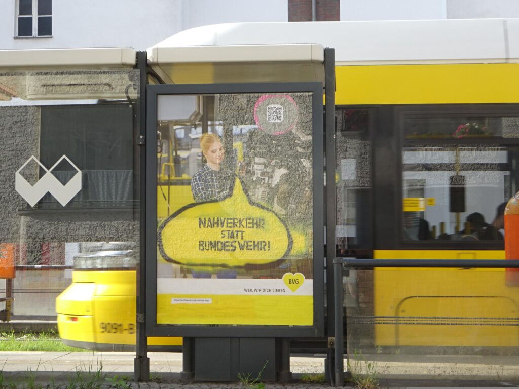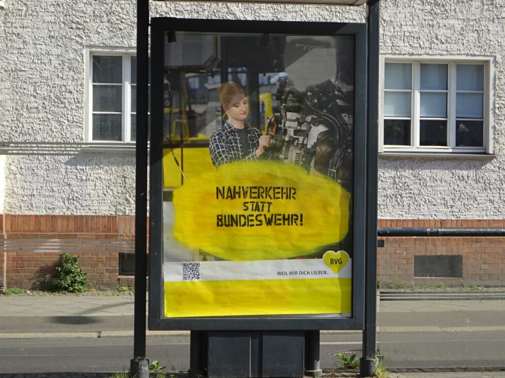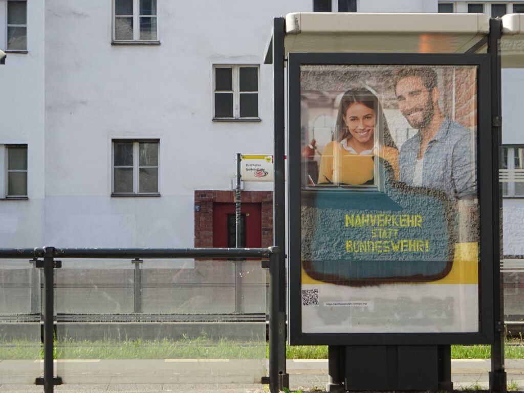 Einfach Werbevitrine öffnen, Sticker auf dem Plakat aufbringen und schon ist das Plakat der Bundis korrigiert mit einem Hinweis zur mangelnden Bekämpfung von Rechtsextremismus in ihren Strukturen 🙂