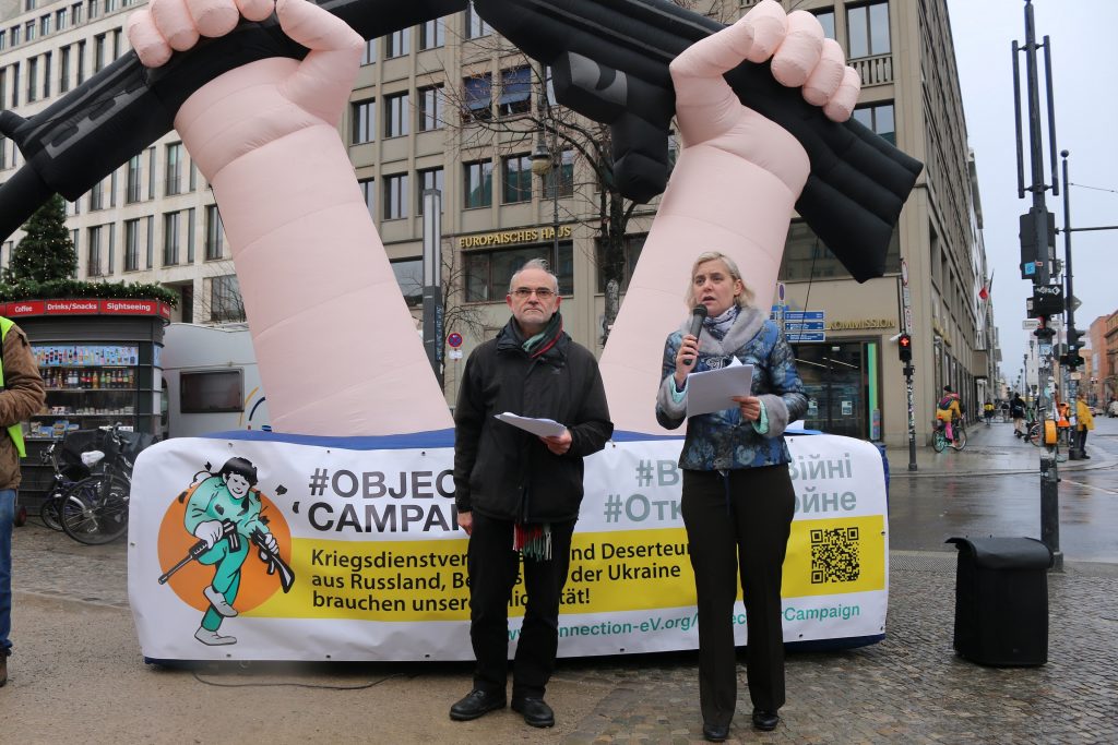 „Es sind diejenigen die sich dem Krieg entziehen. Es sind diejenigen, die mit ihrer eigenen Entscheidung „Nein“ zum Krieg sagen, das Töten beenden wollen. Und deswegen sagen wir: sie brauchen wirklich Schutz und Asyl! Deshalb setzen wir uns für sie ein. Die europäische Kommission lehnt das bisher ab. Es gibt für russische Verweigerer kaum Unterstützung und das ist unbedingt notwendig das hier etwas passiert, eine Änderung entsteht. Es tatsächlich eine Unterstützung derjeniger gibt die sich gegen den Krieg wenden.