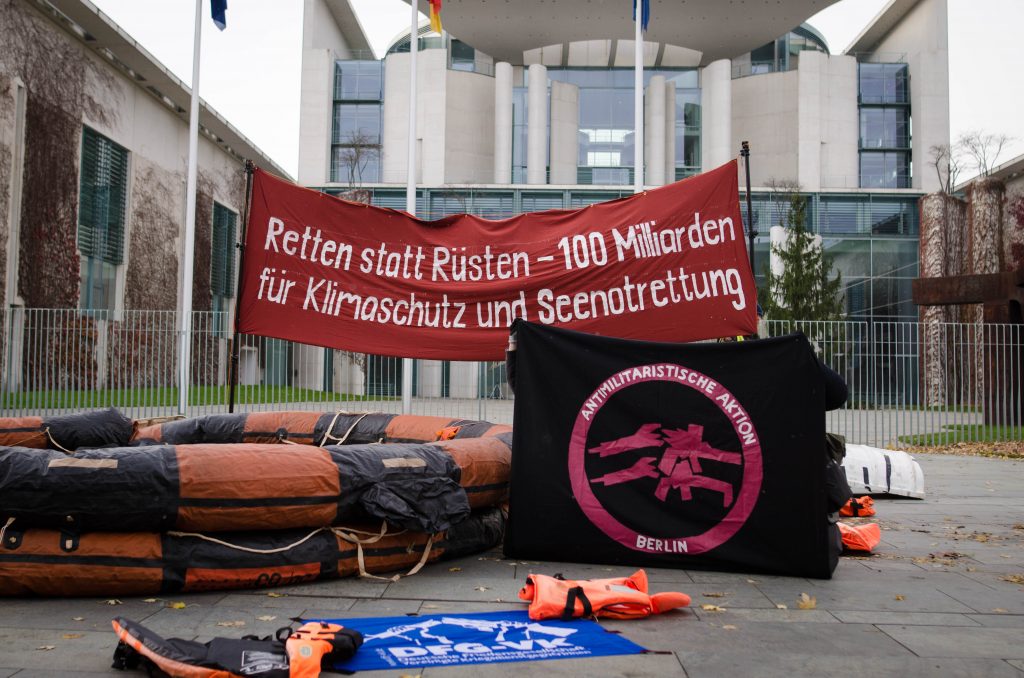 Jugendnetzwerk verkündet 100 Milliarden bessere Ideen für 100 000 000 000 € vorm Kanzler:innenamt: Seenotrettung und Klimaschutz sind mehr Geld wert als die Bundeswehr.Asyl für Kriegsdienstverweiger:innen und Bleiberecht für Alle statt Investitionen in Militär, von der ausschließlich die Rüstungsindustrie profitiert. – Starke Bilder und ein starkes Netzwerk.